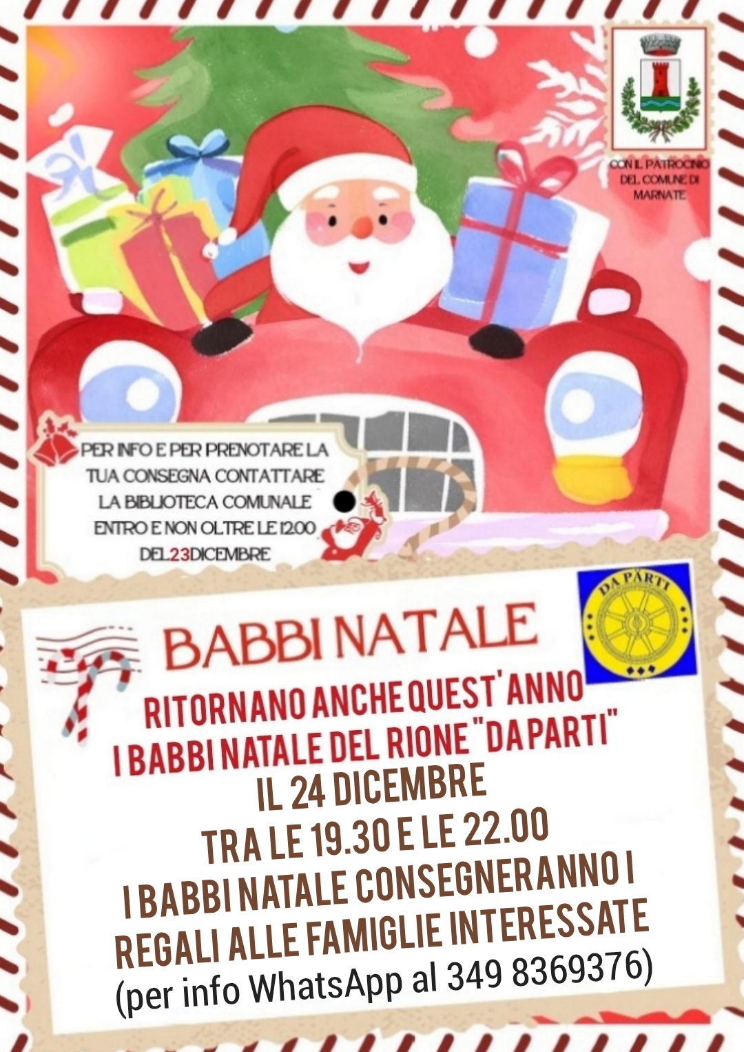 I Babbi Natale consegneranno i regali alle famiglie interessate