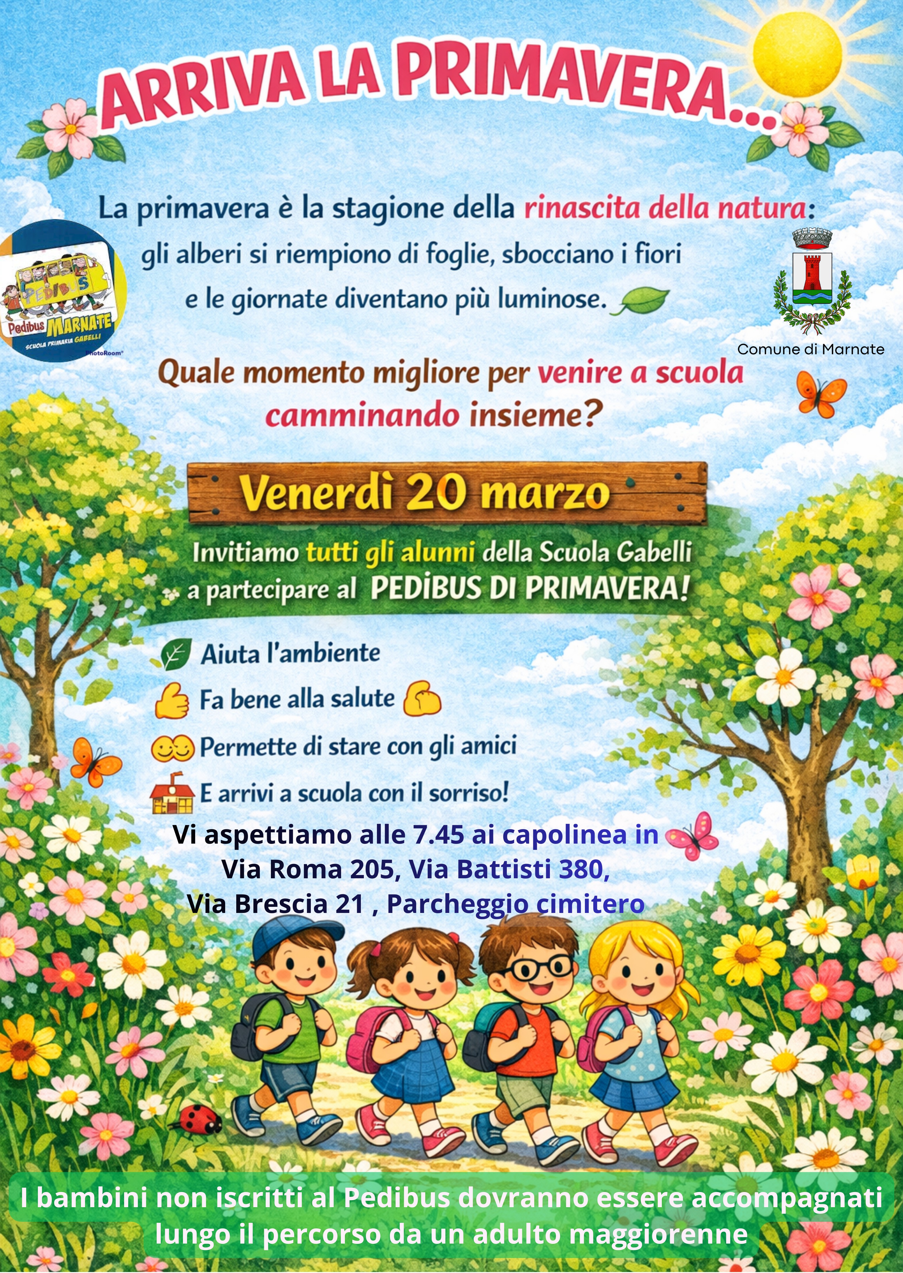 Venerdì 20 marzo 2026  Invitiamo tutti gli alunni della Scuola Gabelli a partecipare al PEDIBUS DI PRIMAVERA